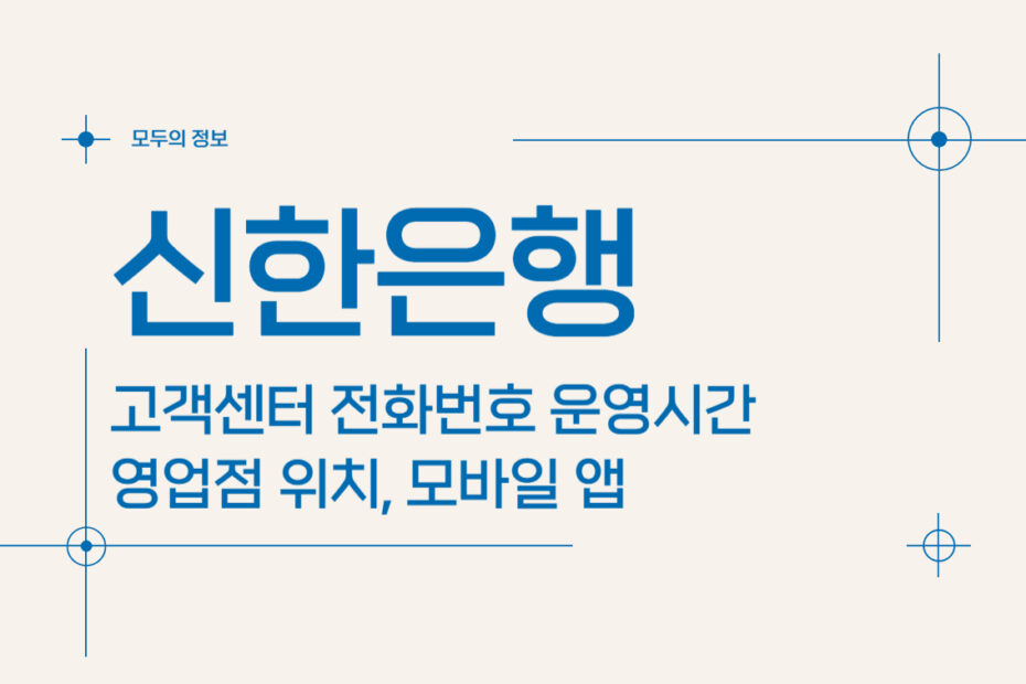 신한은행은 고객에게 다양한 금융 서비스를 제공하는 대표적인 은행으로 고객센터와 영업점 그리고 모바일 앱을 통해 고객의 편의를 도모하고 있습니다. 이번 시간에는 신한은행 고객센터 정보 및 영업점 위치 그리고 모바일 앱 활용에 대해 알아보겠습니다. 신한은행 고객센터 정보 신한은행 고객센터는 고객의 다양한 문의와 요청에 신속하게 대응하기 위해 운영되고 있습니다. ○ 고객센터 전화번호 ○ 고객센터 운영시간 ○ 상담원 연결 … Continue reading 신한은행 고객센터 전화번호 운영시간 영업점 위치 모바일 앱 다운로드