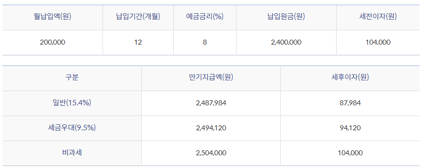 우대 금리 적용 시 월 납입금(30, 20, 10만원)에 따른 이자 및 만기지급액을 알아보겠습니다.
